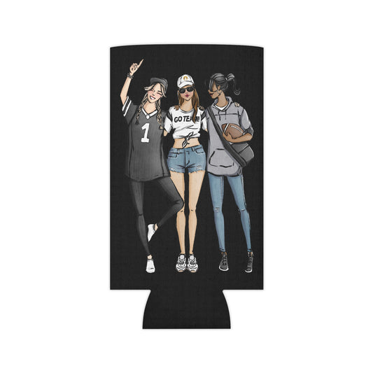 Keepsake Couture Fashion Illustrated Game Day Slim Can Cooler - BLACK TEAMS