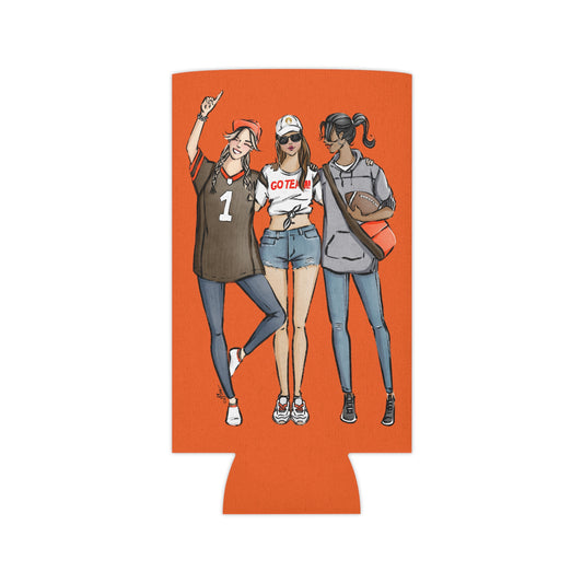 Keepsake Couture Fashion Illustrated Game Day Slim Can Cooler - BROWN & ORANGE TEAMS